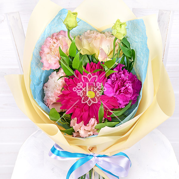 Приятный комплимент – букет из эустомы, герберы и гвоздики